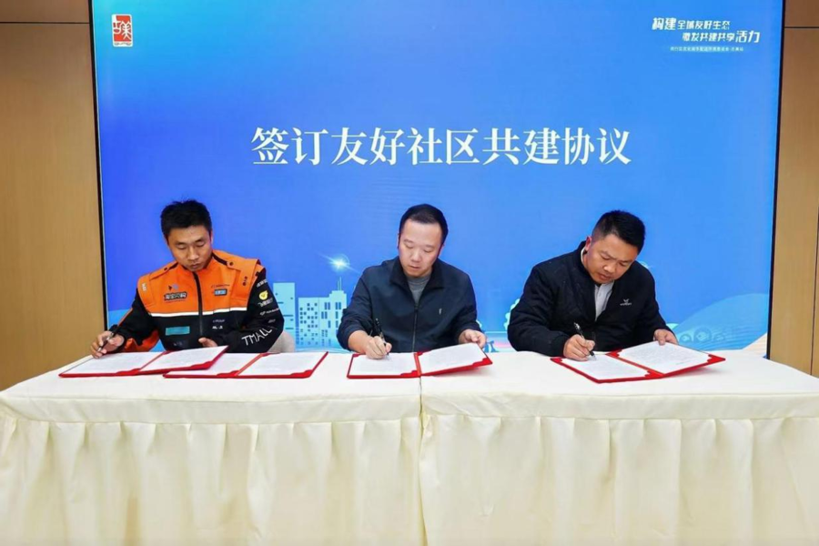 会上,平阳里街区与区域饿了么、顺丰速运网(站)点签署《网约配送员友好社区共建协议书》,从友好场景、权益保障、协同治理等方面作出承诺。骑手与物业代表分别发出了自觉遵守社区规则、文明配送;多一份理解、多一个微笑,畅通配送“最后一百米”的友好倡议。