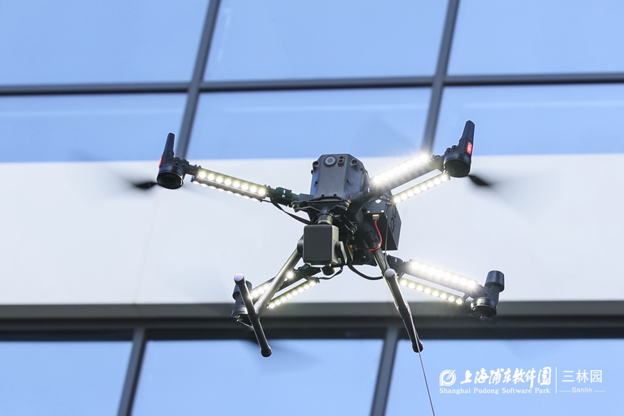 一架架无人机灵活穿梭于高空,高效完成幕墙清洗、咖啡配送等工作,绿色能源加持的氢动力无人机演示载货运输,系留无人机与车辆协同联动,展现应急通讯及侦测智能化新方案……上海浦东软件园三林园内,一幅低空产业多元应用场景的全新图景正徐徐铺展。