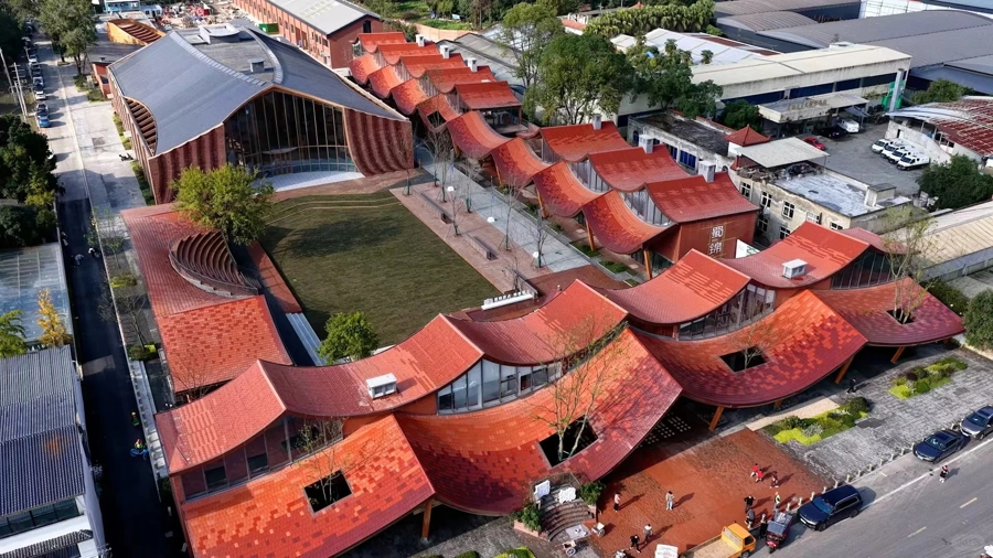 而在成都,废弃农机厂变身蜀锦文创园区。设计师李烨与韩文强以“建筑生命体”理念,将红砖经纬与挑锦屋檐交织,形成如锦缎般柔软的灰空间。园区内,老锦人胡光俊的坚守与新锦人的创新碰撞,蜀锦纹样基因库与飞梭展厅并置,让非遗从“历史遗珠”走向“社区共荣”。这些改造不仅守护了文化根脉,更探索出非遗与乡村振兴的协同机制——以空间为桥,连接过去与未来,让技艺在烟火气中生生不息。