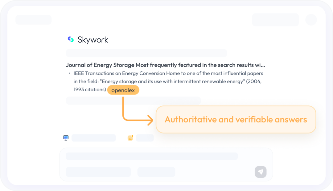 依托430家权威机构数据源基础,Skywork夯实了产品竞争力和市场影响力,让用户能够及时用到可信专业数据,为企业创新、科研工作、个人办公提供强大而高效的AI平台支撑。