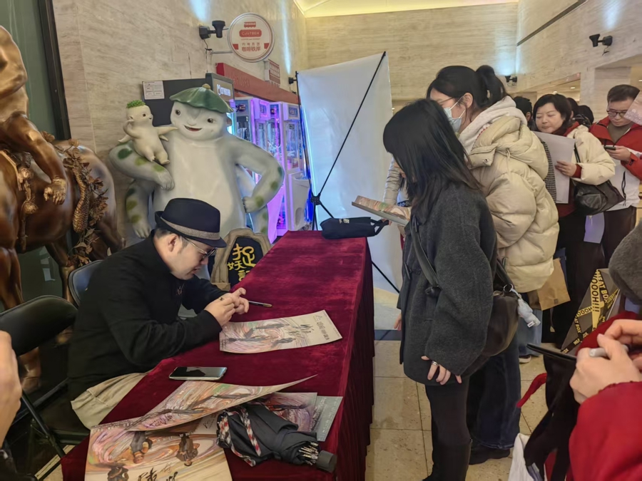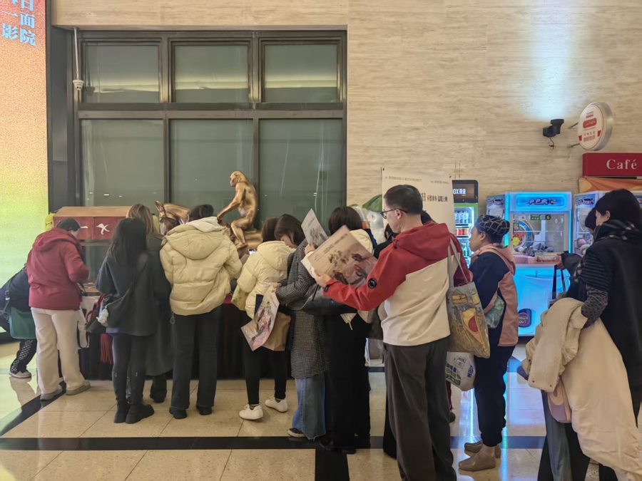 路演结束,观众排队请导演在海报上签名 钟菡 摄